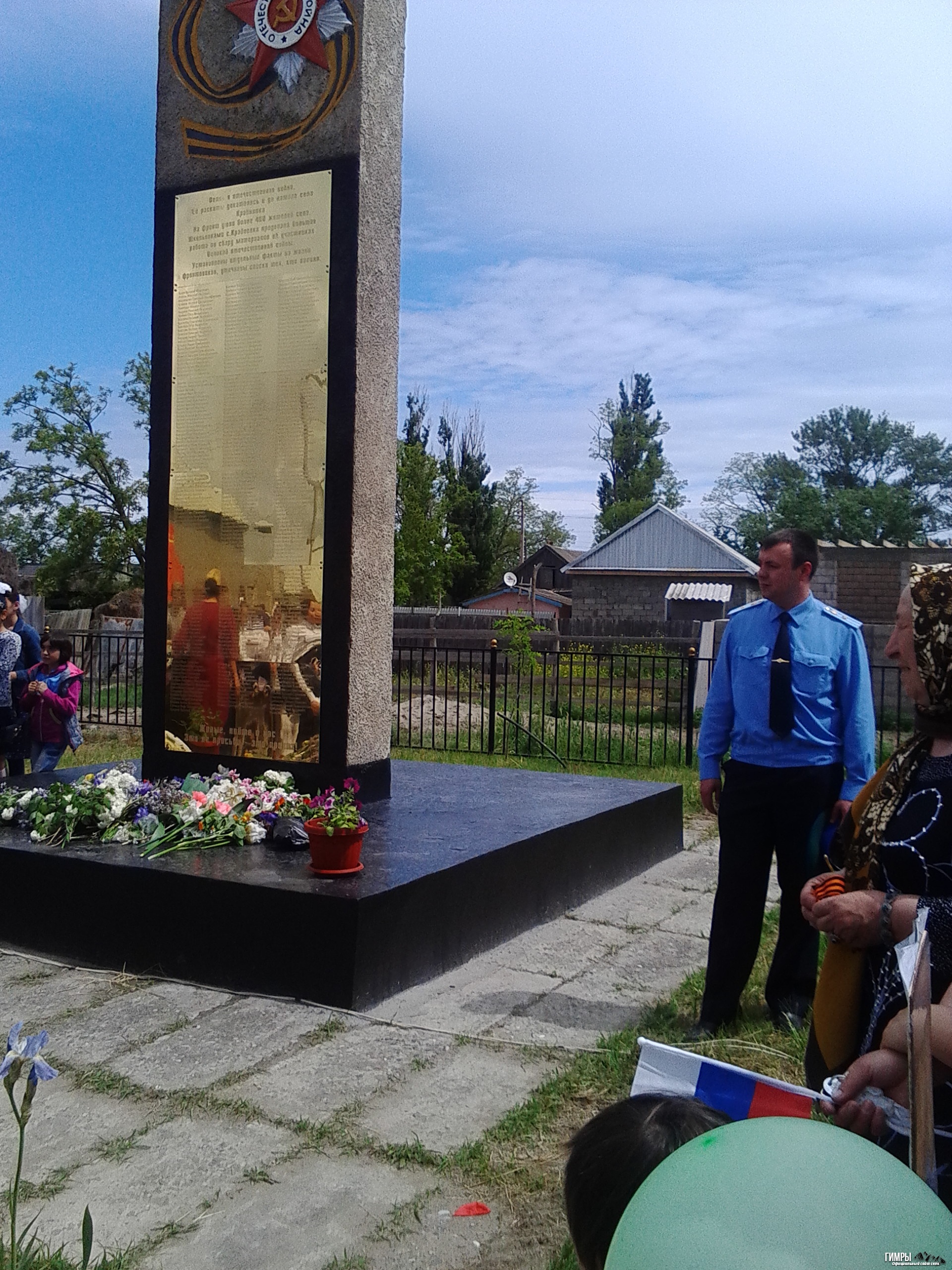В этот день в торжественном мероприятии принял участие "Бессмертный полк", ученики и жители села пришли на митинг с портретами своих отцов, дедов и прадедов - участников войны.