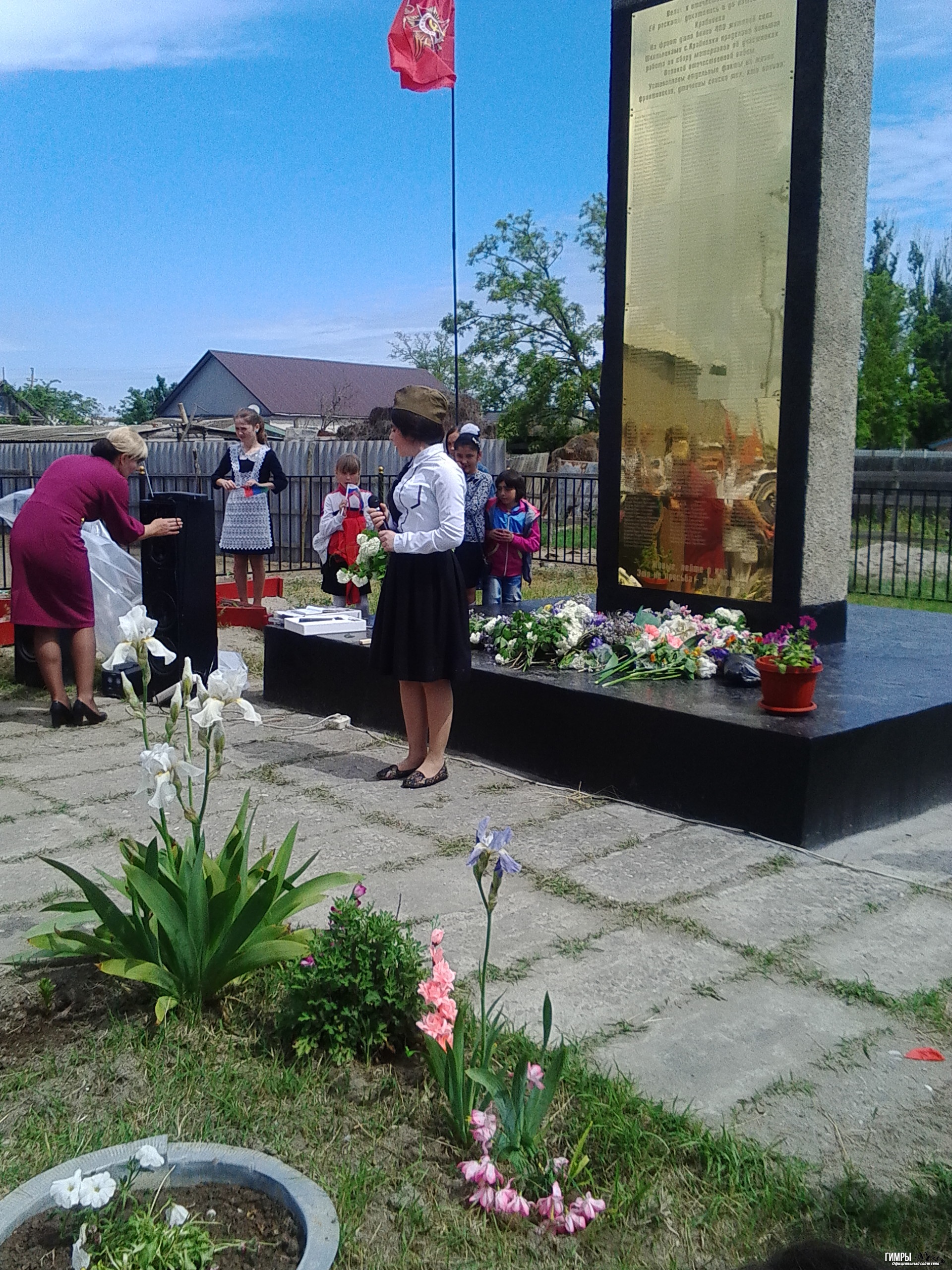 В этот день в торжественном мероприятии принял участие "Бессмертный полк", ученики и жители села пришли на митинг с портретами своих отцов, дедов и прадедов - участников войны.