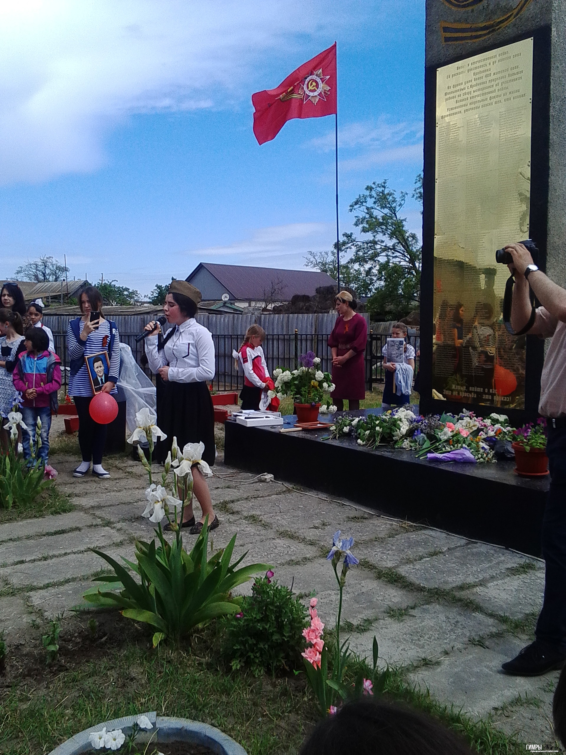 В этот день в торжественном мероприятии принял участие "Бессмертный полк", ученики и жители села пришли на митинг с портретами своих отцов, дедов и прадедов - участников войны.