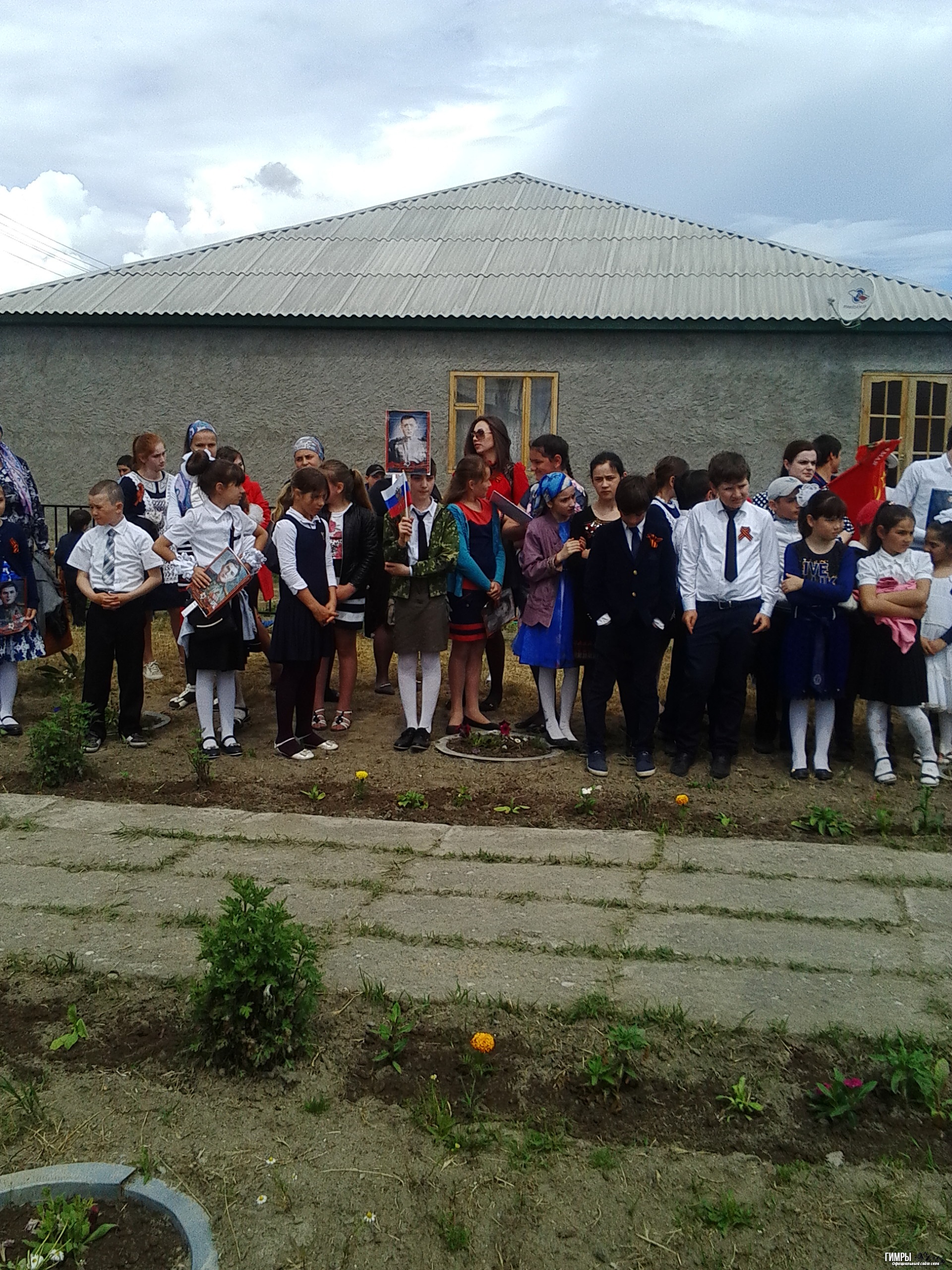 В этот день в торжественном мероприятии принял участие "Бессмертный полк", ученики и жители села пришли на митинг с портретами своих отцов, дедов и прадедов - участников войны.